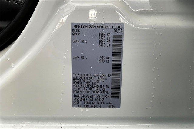 2025 Nissan Altima 2.5 SL White Pearl 4D Sedan 2.5L 4-Cylinder DOHC 16V CVT with Xtronic FWD