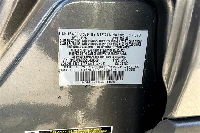 2025 Nissan Kicks SV Gun Metallic 4D Sport Utility 2.0L DOHC CVT with Xtronic AWD