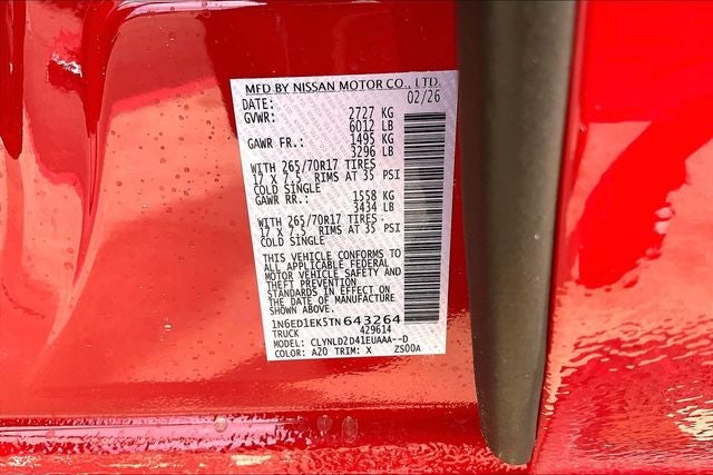 2026 Nissan Frontier PRO-4X Red Alert 4D Crew Cab V6 9-Speed Automatic with Overdrive 4WD