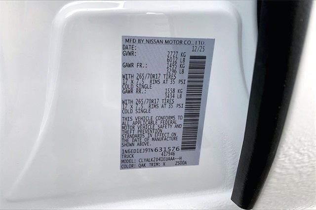 2026 Nissan Frontier PRO-X White 4D Crew Cab 3.8L DI DOHC 24V V6 9-Speed Automatic with Overdrive RWD