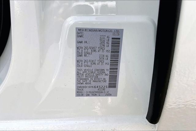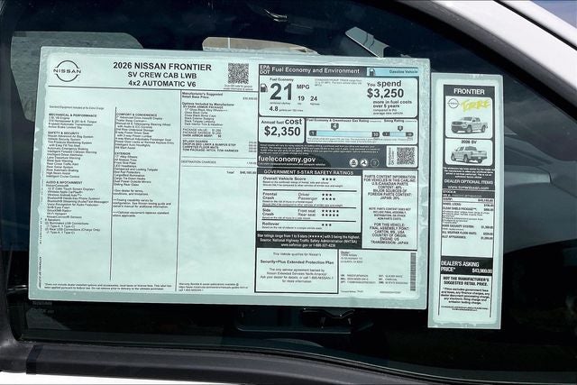 2026 Nissan Frontier SV White 4D Crew Cab 3.8L DI DOHC 24V V6 9-Speed Automatic with Overdrive RWD