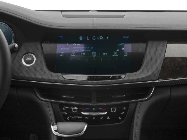 - Cadillac CUE Information and Media Control System with Embedded Navigation AM/FM stereo with embedded navigation, 10.2" diagonal color information display, three USB ports, auxiliary audio port, Natural Voice Recognition and Phone Integration for Apple CarPlay and Android Auto capability for compatible phone
