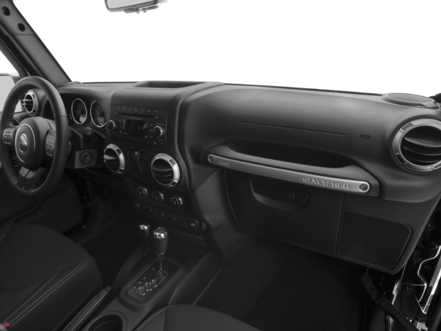 Connectivity Group (Tire Pressure Monitoring Display, Uconnect Voice Command w/Bluetooth®, and Vehicle Information Center), Quick Order Package 24G (Body Color Appliques Front Bumper, Body Color Appliques Rear Bumper, and Body Color/Accent Color Grille), 18 x 7.5 Polished Satin Carbon Wheels, 3.21 Rear Axle Ratio, 4-Wheel Disc Brakes, 40GB Hard Drive w/28GB Available, 5-Year SiriusXM Travel Link Service, 6.5 Touchscreen Display, 8 Speakers, ABS brakes, Air Conditioning, Alloy wheels, AM/FM radio: SiriusXM, Audio Jack Input for Mobile Devices, Auto-dimming Rear-View mirror, Brake assist, CD player, Cloth Seats w/Adjustable Head Restraints, Compass, Delete Sunrider Soft Top, Driver door bin, Driver Height Adjuster Seat, Driver vanity mirror, Dual front impact airbags, Electronic Stability Control, Freedom Panel Storage Bag, Front anti-roll bar, Front Bucket Seats, Front Center Armrest w/Storage, Front fog lights, Front reading lights, Front Seat Back Map Pockets, Fully automatic headlights, GPS Navigation, Heated door mirrors, Heavy Duty Suspension w/Gas Shocks, Illuminated entry, Integrated roll-over protection, Leather steering wheel, Low tire pressure warning, Manufacturer's Statement of Origin, Occupant sensing airbag, Outside temperature display, Panic alarm, Passenger door bin, Passenger vanity mirror, Power door mirrors, Power steering, Power windows, Radio data system, Radio: 130, Radio: 430 Nav, Rear anti-roll bar, Rear Window Defroster, Rear Window Wiper/Washer, Remote keyless entry, Remote USB Port, Security system, SiriusXM Travel Link, Speed control, Steering wheel mounted audio controls, Tachometer, Tilt steering wheel, Traction control, Trip computer, and Variably intermittent wipers.