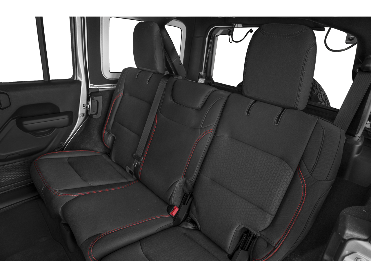 Cold Weather Group (Heated Front Seats and Heated Steering Wheel), Dual Top Group (Black 3-Piece Hard Top, Freedom Panel Storage Bag, Premium Black Sunrider Soft Top w/Dual Top Group, Rear Window Defroster, and Rear Window Wiper/Washer), Electronic Infotainment System Group (1-Year SiriusXM Guardian Trial, 5-Year SiriusXM Traffic Service, 5-Year SiriusXM Travel Link Service, 8.4 Touchscreen Display, Alpine Premium Audio System, Auto-Dimming Rear-View Mirror, GPS Navigation, HD Radio, Radio: Uconnect 4C Nav w/8.4 Display, Roadside Assistance & 9-1-1 Call, SiriusXM Traffic Plus, and SiriusXM Travel Link), LED Lighting Group (Daytime Running Lamps LED Accents, Front LED Fog Lamps, LED Reflector Headlamps, and LED Taillamps), Quick Order Package 24R, Safety Group (Blind Spot & Cross Path Detection and ParkSense Rear Park Assist System), Steel Bumper Group (Steel Front Bumper and Steel Rear Bumper), Trailer Tow & HD Electrical Group (240 Amp Alternator, 7 & 4 Pin Wiring Harness, 700 Amp Maintenance Free Battery, Auxiliary Switches, and Class II Receiver Hitch), 4-Wheel Disc Brakes, 4.10 Rear Axle Ratio, 8 Speakers, ABS brakes, Air Conditioning, Alloy wheels, AM/FM radio: SiriusXM, Apple CarPlay/Android Auto, Automatic temperature control, Body Color 3-Piece Hard Top, Body Color Fender Flares, Brake assist, Compass, Delay-off headlights, Driver door bin, Driver vanity mirror, Dual front impact airbags, Dual front side impact airbags, Electronic Stability Control, Front anti-roll bar, Front Bucket Seats, Front Center Armrest w/Storage, Front dual zone A/C, Front fog lights, Front reading lights, Fully automatic headlights, Garage door transmitter, Heated door mirrors, Illuminated entry, Integrated roll-over protection, Leather steering wheel, Low tire pressure warning, Manufacturer's Statement of Origin (DISC), MOPAR Hardtop Headliner, Non-Lock Fuel Cap w/o Discriminator, Occupant sensing airbag, Outside temperature display, Panic alarm, ParkView Rear Back-Up Camera, Passenger door bin, Passenger vanity mirror, Performance Suspension, Power door mirrors, Power steering, Power windows, Premium Cloth Low-Back Bucket Seats, Radio data system, Radio: Uconnect 4 w/7 Display, Rear anti-roll bar, Rear reading lights, Remote keyless entry, Remote Proximity Keyless Entry, Remote Start System, Security system, Speed control, Split folding rear seat, Steering wheel mounted audio controls, Tachometer, Telescoping steering wheel, Tilt steering wheel, Traction control, Trip computer, Variably intermittent wipers, Voltmeter, and Wheels: 17 x 7.5 Polished w/Black Pockets.