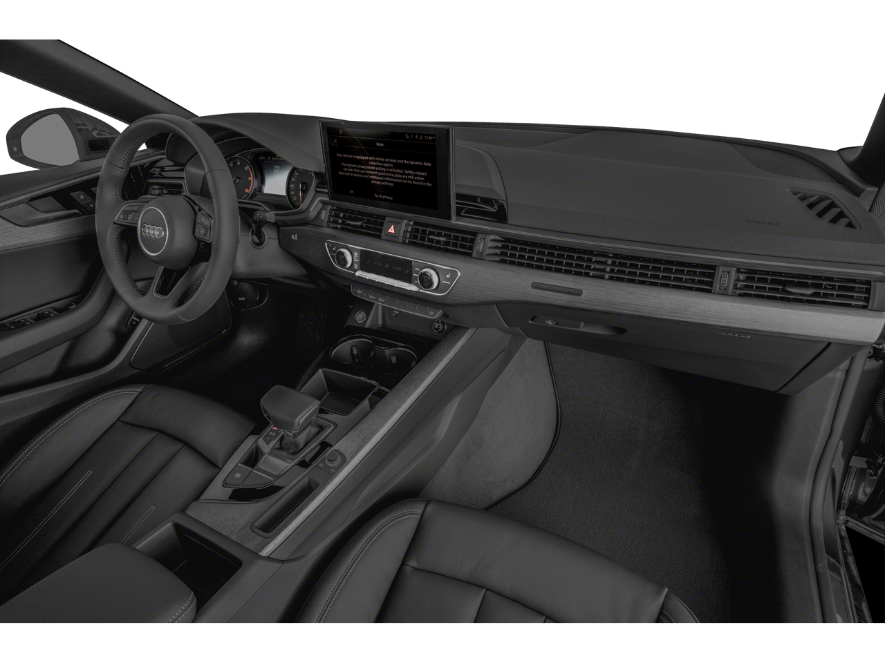 Convenience Package (Alarm System w/Motion Sensors, Audi Advanced Key, Audi Side Assist w/Pre Sense Rear, Auto-Dimming Exterior Mirrors, Driver Seat Memory, Heated Steering Wheel, Parking System Plus (Front/Rear Acoustic Sensors), and SiriusXM All Access Service), quattro, Black w/Leather Seating Surfaces, Navigation System, 10 Speakers, 4-Wheel Disc Brakes, ABS brakes, Air Conditioning, Alloy wheels, AM/FM radio, Anti-whiplash front head restraints, Audi smartphone interface with Apple CarPlay, Auto High-beam Headlights, Auto-dimming Rear-View mirror, Automatic temperature control, Brake assist, Bumpers: body-color, Compass, Delay-off headlights, Driver door bin, Driver vanity mirror, Dual front impact airbags, Dual front side impact airbags, Electronic Stability Control, Emergency communication system: Audi connect CARE, Exterior Parking Camera Rear, Four wheel independent suspension, Front anti-roll bar, Front Bucket Seats, Front Center Armrest, Front dual zone A/C, Front fog lights, Front reading lights, Garage door transmitter: HomeLink, Gray Oak Natural Wood Inlays, Heated door mirrors, Heated front seats, Heated Front Sport Seats, Illuminated entry, Knee airbag, Leather Seating Surfaces, Leather Shift Knob, Leather steering wheel, Low tire pressure warning, Occupant sensing airbag, Outside temperature display, Overhead airbag, Overhead console, Panic alarm, Passenger door bin, Passenger vanity mirror, Power adjustable front head restraints, Power door mirrors, Power driver seat, Power Liftgate, Power moonroof, Power passenger seat, Power steering, Power windows, Radio data system, Radio: Audi Sound System, Rain sensing wipers, Rear air conditioning, Rear anti-roll bar, Rear reading lights, Rear seat center armrest, Rear window defroster, Remote keyless entry, Rings Audi Beam, Speed control, Speed-sensing steering, Speed-Sensitive Wipers, Split folding rear seat, Sport Suspension, Steering wheel mounted audio controls, Tachometer, Telescoping steering wheel, Tilt steering wheel, Traction control, Trip computer, Turn signal indicator mirrors, Variably intermittent wipers, and Wheels: 18 5-V-Spoke-Y Design.