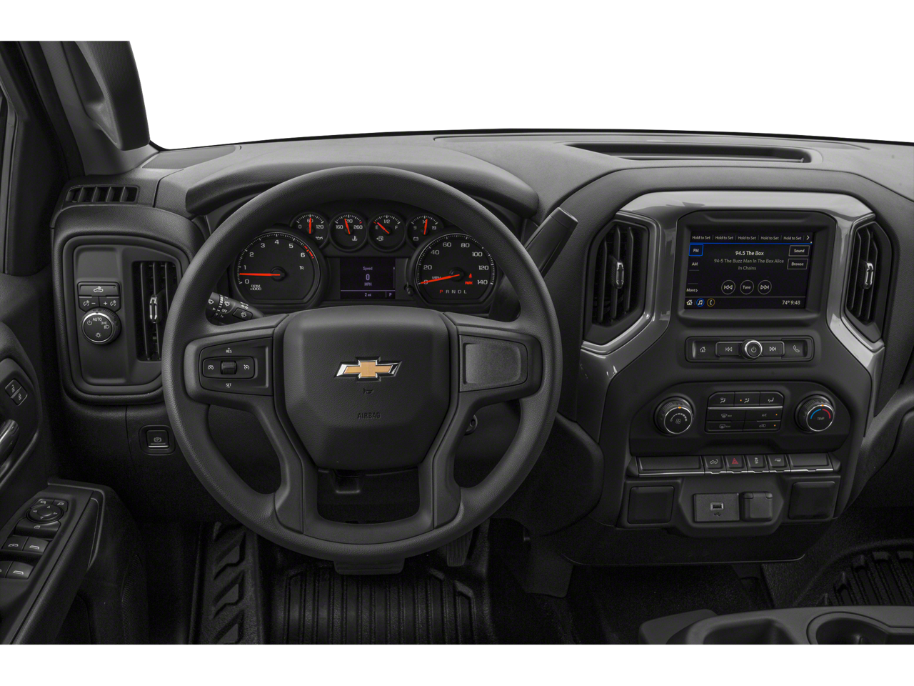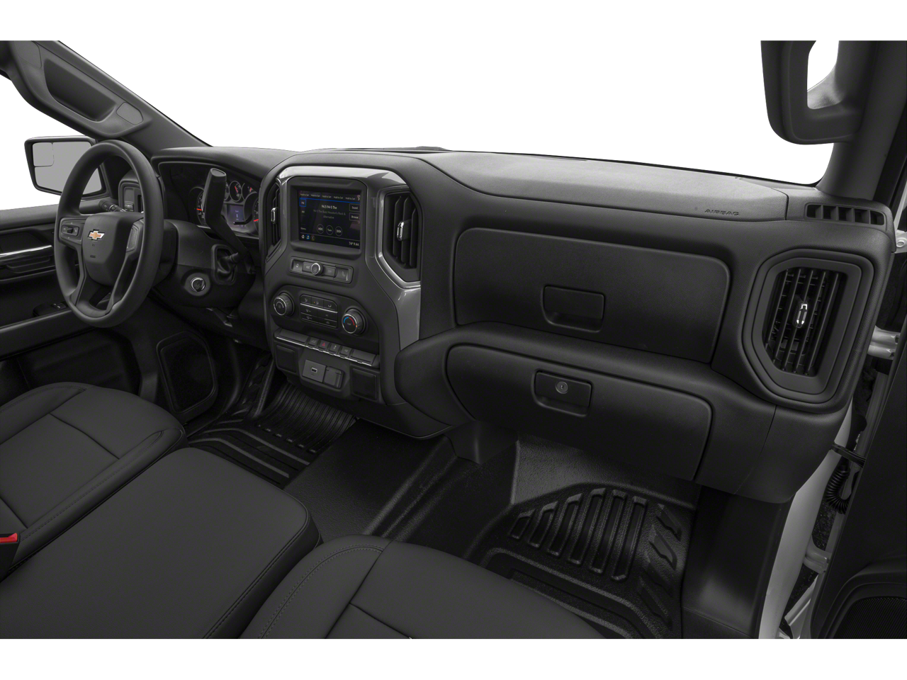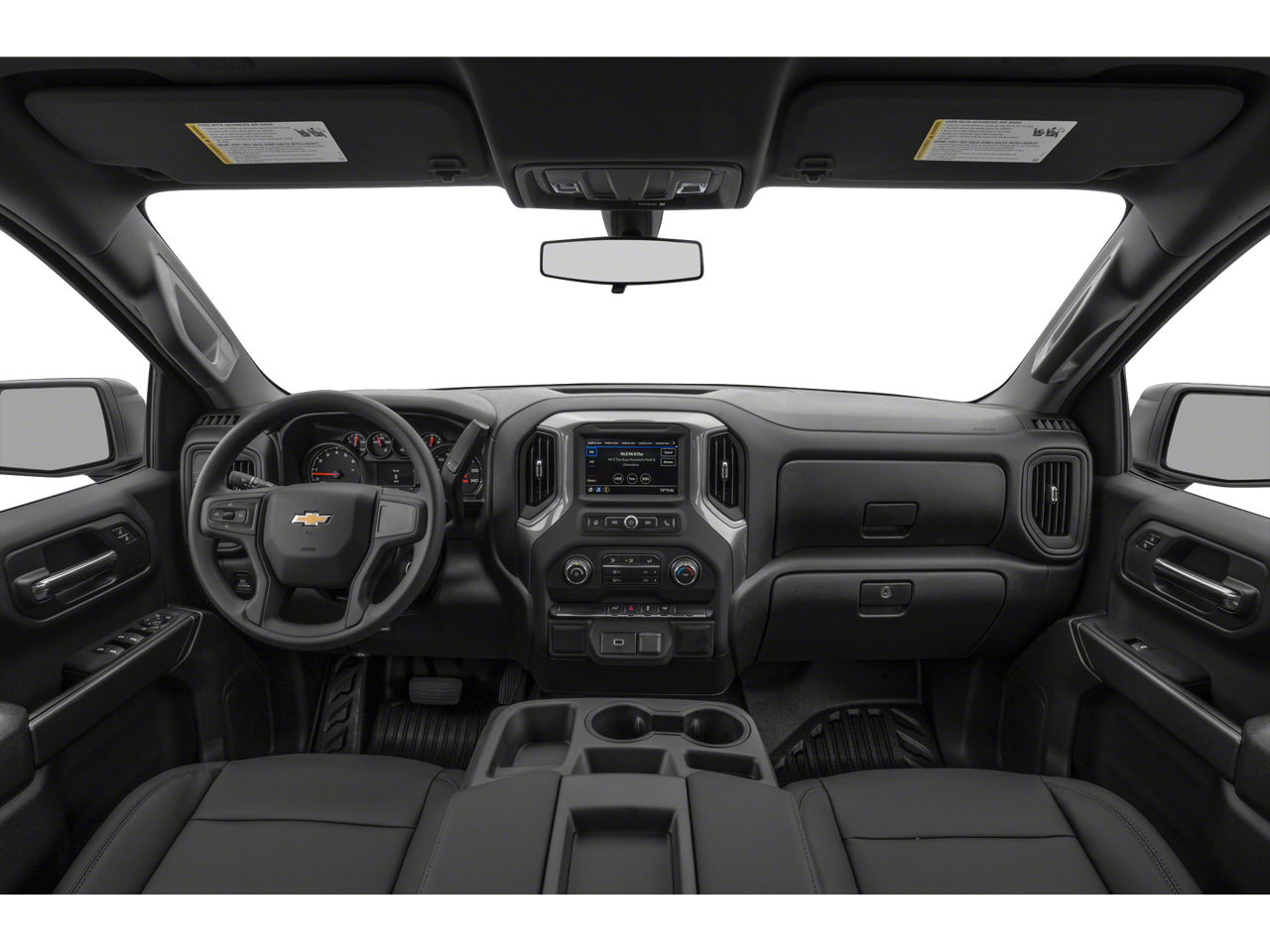 Preferred Equipment Group 1WT (170 Amp Alternator, 3.5 Diagonal Monochromatic Display, Black (Semi-Gloss) Front Bumper, Black (Semi-Gloss) Rear Bumper, Black Grille, Black Manual Outside Mirrors, Bluetooth® For Phone, Front Frame-Mounted Black Recovery Hooks, Locking Tailgate, Manual Tilt Wheel Steering Column, Power Door Locks, Power Front Windows w/Driver Express Up/Down, Rear 60/40 Folding Bench Seat (Folds Up), Rubberized-Vinyl Floor Covering, Solar Absorbing Tinted Glass, and Standard Tailgate), Trailering Package (Hitch Guidance), 6-Speed Automatic Electronic with Overdrive, 4WD, Jet Black Vinyl, 3.42 Rear Axle Ratio, 4-Wheel Disc Brakes, 40/20/40 Front Split Bench Seat, 4G LTE Wi-Fi Hot Spot Capable, 6 Speakers, ABS brakes, Air Conditioning, AM/FM radio, Apple CarPlay/Android Auto, Auxiliary External Transmission Oil Cooler, Brake assist, Chevrolet Connected Access Capable, Chevytec Spray-On Black Bedliner, Compass, Delay-off headlights, Driver door bin, Dual front impact airbags, Dual front side impact airbags, Electronic Cruise Control, Electronic Stability Control, EZ Lift Power Lock & Release Tailgate, Front anti-roll bar, Front Center Armrest w/Storage, Front License Plate Kit, Front reading lights, Front wheel independent suspension, Fully automatic headlights, Heated Power-Adjustable Outside Mirrors, Heavy Duty Suspension, Low tire pressure warning, Not Equipped w/Active Fuel Management, Occupant sensing airbag, OnStar & Chevrolet Connected Services Capable, Outside temperature display, Overhead airbag, Overhead console, Passenger door bin, Passenger vanity mirror, Power steering, Power windows, Premium audio system: Chevrolet Infotainment 3, Radio data system, Radio: Chevrolet Infotainment 3 System, Rear reading lights, Rear step bumper, Remote Keyless Entry, SiriusXM Radio, Speed-sensing steering, Split folding rear seat, Tachometer, Tilt steering wheel, Traction control, Trip computer, Variably intermittent wipers, Vinyl Seat Trim, Voltmeter, and Wheels: 17 x 8 Ultra Silver Painted Steel.