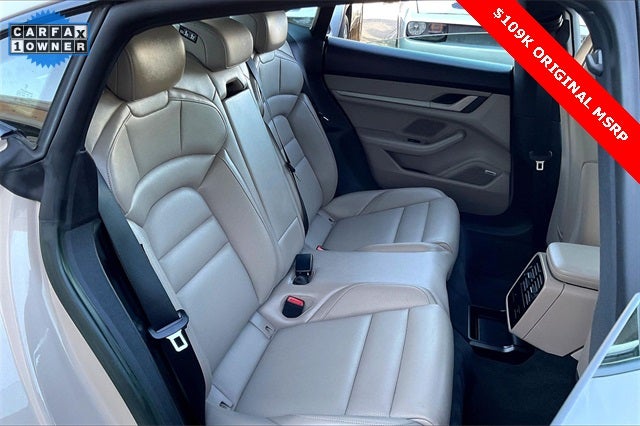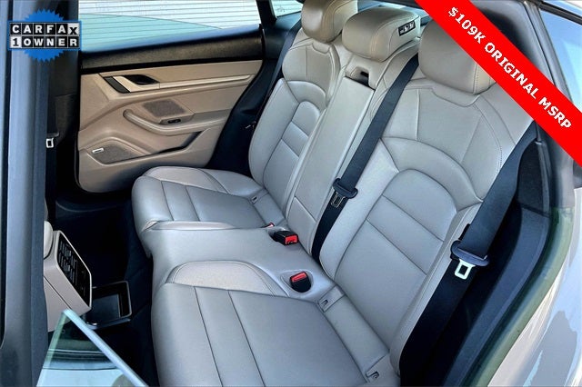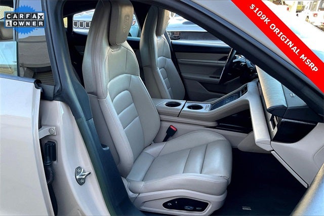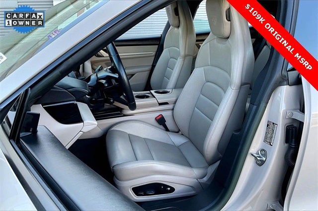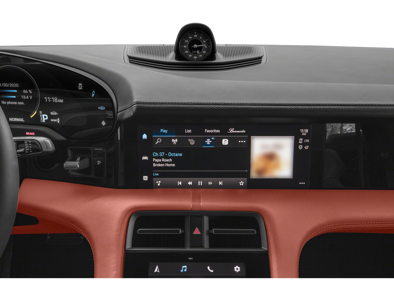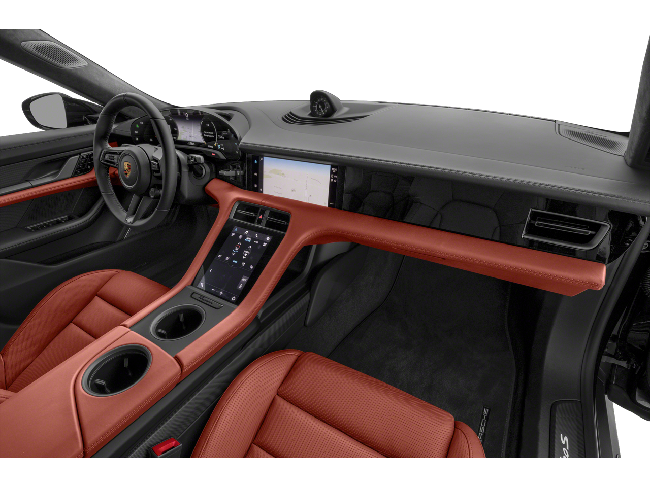 14-Way Power Seats w/Memory Package, Premium Package (Ambient Lighting, BOSE Surround Sound System, Fixed Panoramic Roof in Glass, Front Seat Ventilation, Ionizer, Lane Change Assist (LCA), LED-Matrix Design Headlights w/PDLS+, Power Folding Exterior Mirrors, and Surround View), Sport Chrono Package, Storage Package, Adaptive Air Suspension w/PASM, Heated front seats, Heated Steering Wheel, Navigation system: Porsche Communication Management (PCM), Rain sensing wipers, SportDesign Side Skirts, Wheels Painted in Jet Black Metallic, Wheels: 21 Taycan Exclusive Design, 10 Speakers, 3 Years of 30 Minute DC Charging Sessions, 4-Wheel Disc Brakes, 8-Way Power Seats, ABS brakes, Air Conditioning, Alloy wheels, Auto-dimming door mirrors, Auto-dimming Rear-View mirror, Automatic temperature control, Brake assist, Bumpers: body-color, Compass, Delay-off headlights, Driver door bin, Driver vanity mirror, Dual front impact airbags, Dual front side impact airbags, Electronic Stability Control, Exterior Parking Camera Rear, Four wheel independent suspension, Front anti-roll bar, Front Bucket Seats, Front Center Armrest, Front dual zone A/C, Front reading lights, Fully automatic headlights, Garage door transmitter: HomeLink, Heated door mirrors, Illuminated entry, Knee airbag, Leather steering wheel, Low tire pressure warning, Occupant sensing airbag, Outside temperature display, Overhead airbag, Overhead console, Panic alarm, Partial Leather Seat Trim, Passenger door bin, Passenger vanity mirror, Porsche Communication Management, Power door mirrors, Power driver seat, Power passenger seat, Power steering, Power windows, Radio data system, Rear anti-roll bar, Rear fog lights, Rear reading lights, Rear seat center armrest, Rear side impact airbag, Rear window defroster, Remote keyless entry, Security system, Speed control, Speed-sensing steering, Split folding rear seat, Spoiler, Sport steering wheel, Steering wheel mounted audio controls, Telescoping steering wheel, Tilt steering wheel, Traction control, Trip computer, Variably intermittent wipers, and Wheels: 19 Taycan Aero.