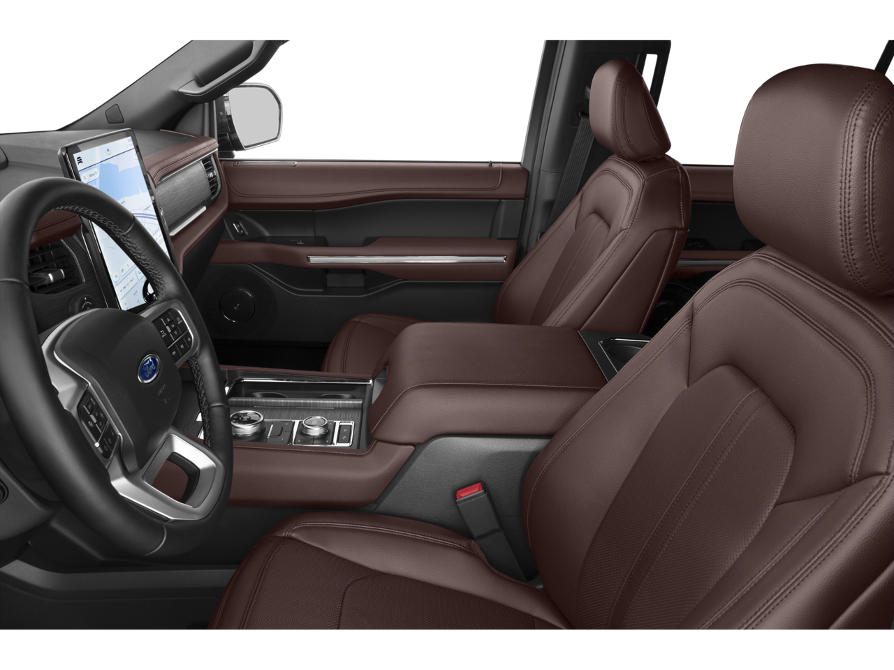 Equipment Group 301A Mid Package, Navigation system: Connected Navigation, 12 Speakers, 2nd Row Power-Folding 40/20/40 Leather Bench Seat, 3.31 Axle Ratio, 3rd row seats: split-bench, 4-Wheel Disc Brakes, ABS brakes, Adjustable pedals, Air Conditioning, Alloy wheels, AM/FM radio: SiriusXM with 360L, Auto High-beam Headlights, Auto-dimming door mirrors, Auto-dimming Rear-View mirror, Automatic temperature control, Brake assist, Bumpers: body-color, Compass, Delay-off headlights, Driver door bin, Driver vanity mirror, Dual front impact airbags, Dual front side impact airbags, Electronic Stability Control, Emergency communication system: SYNC 4 911 Assist, Exterior Parking Camera Rear, Four wheel independent suspension, Front anti-roll bar, Front Bucket Seats, Front Center Armrest, Front dual zone A/C, Front fog lights, Front License Plate Bracket, Front reading lights, Fully automatic headlights, Garage door transmitter, Heated & Ventilated Leather Front Captain's Chairs, Heated door mirrors, Heated front seats, Heated rear seats, Heated steering wheel, Illuminated entry, Leather steering wheel, Low tire pressure warning, Memory seat, Occupant sensing airbag, Outside temperature display, Overhead airbag, Overhead console, Panic alarm, Passenger door bin, Passenger vanity mirror, Pedal memory, Power door mirrors, Power driver seat, Power Liftgate, Power moonroof, Power passenger seat, Power steering, Power windows, Radio data system, Radio: B&O Sound System by Bang & Olufsen, Rain sensing wipers, Rear air conditioning, Rear anti-roll bar, Rear reading lights, Rear window defroster, Rear window wiper, Reclining 3rd row seat, Remote keyless entry, Security system, SiriusXM w/360L, Speed control, Speed-sensing steering, Speed-Sensitive Wipers, Split folding rear seat, Spoiler, Steering wheel memory, Steering wheel mounted audio controls, SYNC 4 w/Enhanced Voice Recognition, Tachometer, Telescoping steering wheel, Tilt steering wheel, Traction control, Trip computer, Turn signal indicator mirrors, Variably intermittent wipers, Ventilated front seats, Voltmeter, and Wheels: 20 Bright Machined Aluminum.