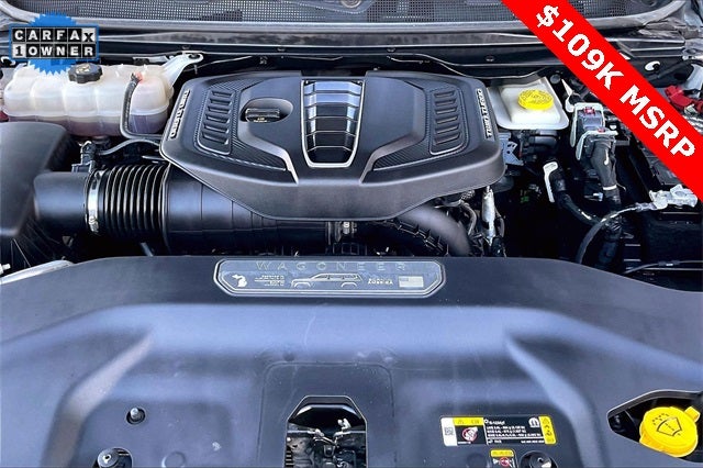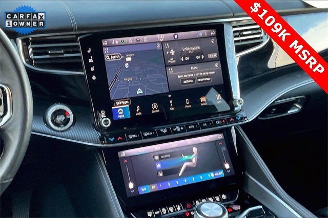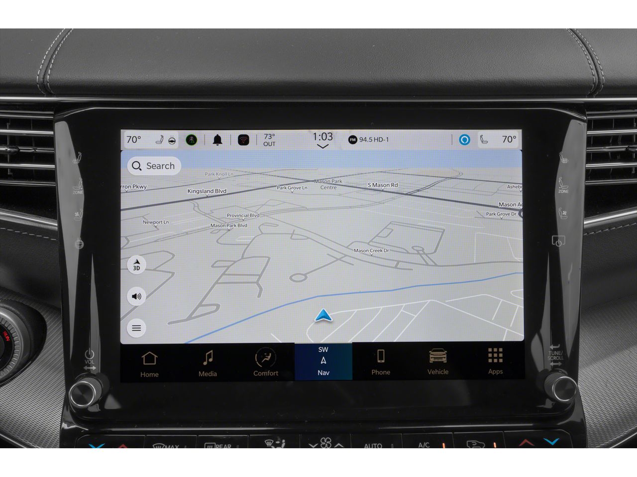 Obsidian Appearance Package, Quick Order Package 28T Obsidian (23 Speaker McIntosh Reference Audio System, Adjustable Roof Rail Crossbars, Black Interior Accents, Black Roof, Front Console Cooler, Front Passenger Interactive Display, Gloss Black Upper & Lower DLO Molding, Piano Black Exterior Accents, Rearview Autodim Digital Display Mirror, Ventilated Rear Seats, and Wheels: 22 x 9.0 Tinted Polished w/Black Insert), Two Tone Paint Group, Navigation System, 19 Speakers, 3rd row seats: bench, 4-Wheel Disc Brakes, ABS brakes, Adjustable pedals, Air Conditioning, Alloy wheels, AM/FM radio: SiriusXM with 360L, Anti-whiplash front head restraints, Apple CarPlay/Android Auto, Audio memory, Auto High-beam Headlights, Auto-dimming door mirrors, Auto-dimming Rear-View mirror, Auto-leveling suspension, Automatic temperature control, Brake assist, Bumpers: body-color, Compass, Delay-off headlights, Driver door bin, Driver vanity mirror, Driver's Seat Mounted Armrest, Dual front impact airbags, Dual front side impact airbags, Electronic Stability Control, Emergency communication system, Four wheel independent suspension, Front anti-roll bar, Front Bucket Seats, Front Center Armrest w/Storage, Front dual zone A/C, Front fog lights, Front reading lights, Fully automatic headlights, Garage door transmitter, Genuine wood console insert, Genuine wood dashboard insert, Genuine wood door panel insert, Heads-Up Display, Heated door mirrors, Heated front seats, Heated rear seats, Heated steering wheel, Illuminated entry, Knee airbag, Leather steering wheel, Leather Trimmed Bucket Seats, Low tire pressure warning, Memory seat, Normal Duty Suspension, Occupant sensing airbag, Outside temperature display, Overhead airbag, Overhead console, Panic alarm, Passenger door bin, Passenger seat mounted armrest, Passenger vanity mirror, Pedal memory, Power adjustable front head restraints, Power door mirrors, Power driver seat, Power Liftgate, Power moonroof, Power passenger seat, Power steering, Power windows, Radio data system, Radio: Uconnect 5 Nav w/12.0 Display, Rain sensing wipers, Rear air conditioning, Rear anti-roll bar, Rear dual zone A/C, Rear reading lights, Rear seat center armrest, Rear window defroster, Rear window wiper, Reclining 3rd row seat, Remote keyless entry, Security system, Speed control, Speed-sensing steering, Speed-Sensitive Wipers, Split folding rear seat, Steering wheel memory, Steering wheel mounted audio controls, Tachometer, Telescoping steering wheel, Tilt steering wheel, Traction control, Trip computer, Turn signal indicator mirrors, Variably intermittent wipers, Ventilated front seats, and Voltmeter.