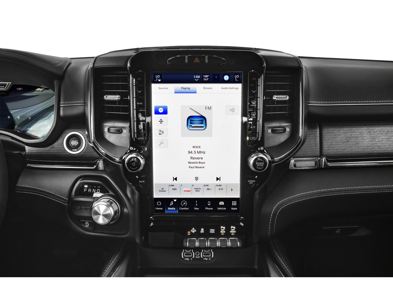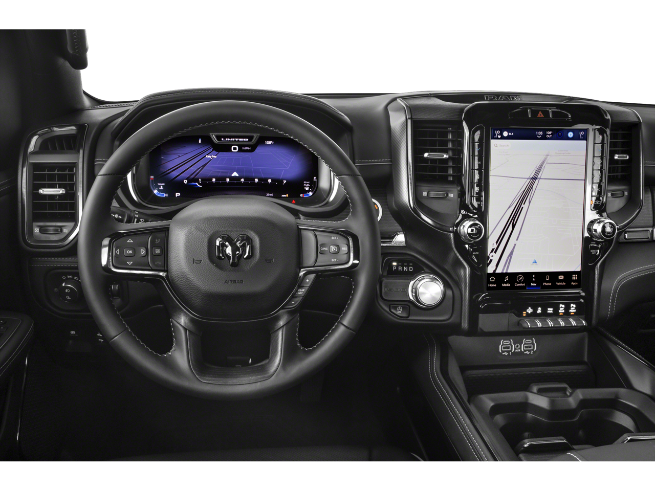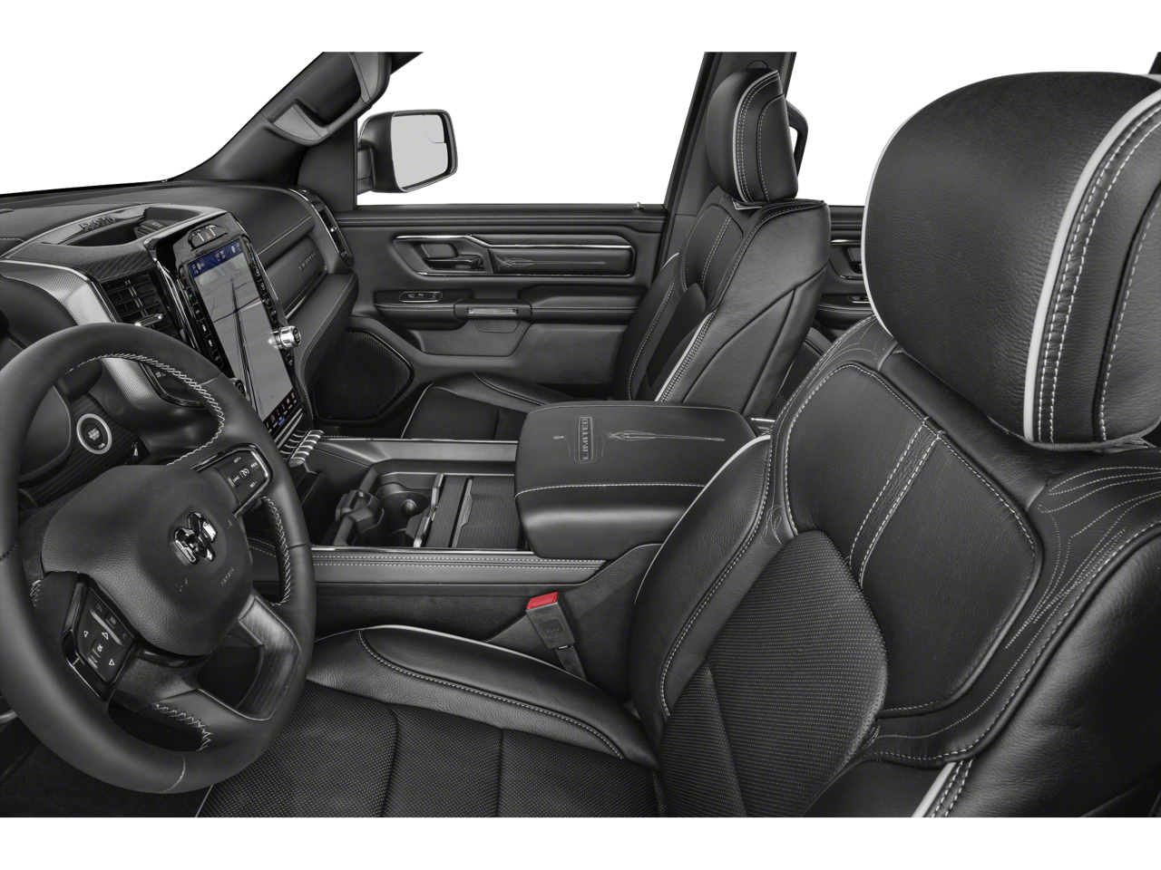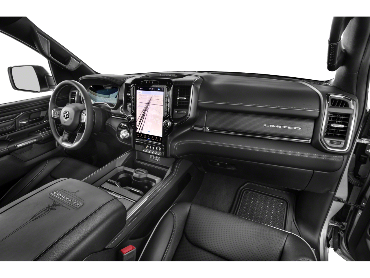 Limited Level 1 Equipment Group (Adaptive Cruise Control w/Stop & Go, Digital Rearview Mirror, harman/kardon 19 Speaker Premium Sound, Heads-Up Display, Lane Keep Assist, LED CHMSL Lamp, MOPAR Spray In Bedliner, Parallel & Perp Park Assist w/Stop, ParkSense Front/Rear Park Assist w/Stop, Pedestrian Emergency Braking, Pick-Up Box Lighting, Power Running Boards, Surround View Camera System, and Wireless Charging Pad), Trailer Tow Group (Trailer Brake Control, Trailer Light Check, Trailer Reverse Steering Control, and Trailer Tire Pressure Monitoring System), Quick Order Package 27M Limited, Navigation System, Wheels: 22 x 9 Polish/Painted w/Inserts, 10 Speakers, 33 Gallon Fuel Tank, 4 Way Front Headrests, 4-Wheel Disc Brakes, 48V Belt Starter Generator, ABS brakes, Active Noise Control System, Adjustable pedals, Air Conditioning, Alloy wheels, AM/FM radio: SiriusXM with 360L, Apple CarPlay/Android Auto, Audio memory, Auto High-beam Headlights, Auto-dimming door mirrors, Auto-Dimming Exterior Driver Mirror, Auto-dimming Rear-View mirror, Auto-leveling suspension, Automatic temperature control, Bodyside moldings, Brake assist, Bucket Seats, Bumpers: chrome, Chrome Exterior Mirrors, Compass, Convex Wide-Angle Exterior Mirror Insert, Delay-off headlights, Driver door bin, Driver Seat Memory, Driver vanity mirror, Dual front impact airbags, Dual front side impact airbags, Dual Rear Exhaust w/Bright Tips, Electronic Stability Control, Engine Block Heater, Exterior Mirrors Courtesy Lamps, Exterior Mirrors w/Heating Element, Exterior Mirrors w/Memory, Exterior Mirrors w/Supplemental Signals, Front anti-roll bar, Front Bucket Seats, Front Center Armrest w/Storage, Front dual zone A/C, Front fog lights, Front License Plate Bracket, Front reading lights, Front Seat Back Map Pockets, Front wheel independent suspension, Full Length Premium Floor Console, Fully automatic headlights, Garage door transmitter, Genuine wood console insert, Genuine wood dashboard insert, Genuine wood door panel insert, Heated door mirrors, Heated Front Seats, Heated front seats, Heated rear seats, Heated Second Row Seats, Heated Steering Wheel, Heated steering wheel, Heavy-Duty Engine Cooling, HEMI Badge, Illuminated entry, Leather steering wheel, Low tire pressure warning, Manufacturer's Statement of Origin, Memory seat, Occupant sensing airbag, Outside temperature display, Overhead airbag, Overhead console, Panic alarm, ParkView Rear Back-Up Camera, Passenger door bin, Passenger vanity mirror, Passive Tuned Mass Damper, Pedal memory, Power 4-Way Driver Lumbar Adjust, Power 4-Way Passenger Lumbar Adjust, Power 8-Way Driver & Passenger Seats, Power door mirrors, Power driver seat, Power passenger seat, Power steering, Power windows, Power-Folding Mirrors, Premium Leather Trimmed Bucket Seats, Radio data system, Radio: Uconnect 5 Nav w/12.0 Display, Rain sensing wipers, Rear 60/40 Folding Split Recline Seat, Rear anti-roll bar, Rear seat center armrest, Rear step bumper, Rear window defroster, Remote keyless entry, Se