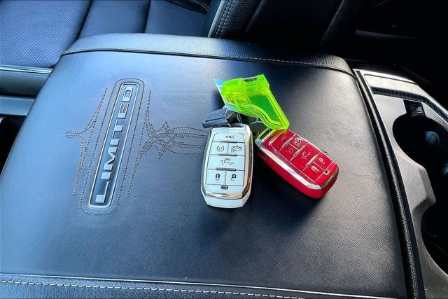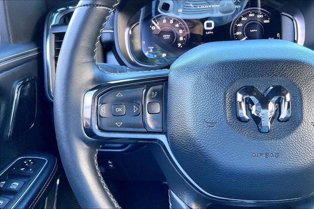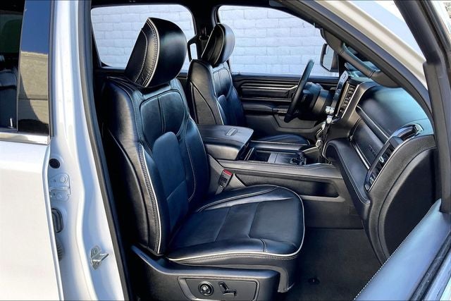Limited Level 1 Equipment Group (Adaptive Cruise Control w/Stop & Go, Digital Rearview Mirror, harman/kardon 19 Speaker Premium Sound, Heads-Up Display, Lane Keep Assist, LED CHMSL Lamp, MOPAR Spray In Bedliner, Parallel & Perp Park Assist w/Stop, ParkSense Front/Rear Park Assist w/Stop, Pedestrian Emergency Braking, Pick-Up Box Lighting, Power Running Boards, Surround View Camera System, and Wireless Charging Pad), Trailer Tow Group (Trailer Brake Control, Trailer Light Check, Trailer Reverse Steering Control, and Trailer Tire Pressure Monitoring System), Quick Order Package 27M Limited, Navigation System, Wheels: 22 x 9 Polish/Painted w/Inserts, 10 Speakers, 33 Gallon Fuel Tank, 4 Way Front Headrests, 4-Wheel Disc Brakes, 48V Belt Starter Generator, ABS brakes, Active Noise Control System, Adjustable pedals, Air Conditioning, Alloy wheels, AM/FM radio: SiriusXM with 360L, Apple CarPlay/Android Auto, Audio memory, Auto High-beam Headlights, Auto-dimming door mirrors, Auto-Dimming Exterior Driver Mirror, Auto-dimming Rear-View mirror, Auto-leveling suspension, Automatic temperature control, Bodyside moldings, Brake assist, Bucket Seats, Bumpers: chrome, Chrome Exterior Mirrors, Compass, Convex Wide-Angle Exterior Mirror Insert, Delay-off headlights, Driver door bin, Driver Seat Memory, Driver vanity mirror, Dual front impact airbags, Dual front side impact airbags, Dual Rear Exhaust w/Bright Tips, Electronic Stability Control, Engine Block Heater, Exterior Mirrors Courtesy Lamps, Exterior Mirrors w/Heating Element, Exterior Mirrors w/Memory, Exterior Mirrors w/Supplemental Signals, Front anti-roll bar, Front Bucket Seats, Front Center Armrest w/Storage, Front dual zone A/C, Front fog lights, Front License Plate Bracket, Front reading lights, Front Seat Back Map Pockets, Front wheel independent suspension, Full Length Premium Floor Console, Fully automatic headlights, Garage door transmitter, Genuine wood console insert, Genuine wood dashboard insert, Genuine wood door panel insert, Heated door mirrors, Heated Front Seats, Heated front seats, Heated rear seats, Heated Second Row Seats, Heated Steering Wheel, Heated steering wheel, Heavy-Duty Engine Cooling, HEMI Badge, Illuminated entry, Leather steering wheel, Low tire pressure warning, Manufacturer's Statement of Origin, Memory seat, Occupant sensing airbag, Outside temperature display, Overhead airbag, Overhead console, Panic alarm, ParkView Rear Back-Up Camera, Passenger door bin, Passenger vanity mirror, Passive Tuned Mass Damper, Pedal memory, Power 4-Way Driver Lumbar Adjust, Power 4-Way Passenger Lumbar Adjust, Power 8-Way Driver & Passenger Seats, Power door mirrors, Power driver seat, Power passenger seat, Power steering, Power windows, Power-Folding Mirrors, Premium Leather Trimmed Bucket Seats, Radio data system, Radio: Uconnect 5 Nav w/12.0 Display, Rain sensing wipers, Rear 60/40 Folding Split Recline Seat, Rear anti-roll bar, Rear seat center armrest, Rear step bumper, Rear windo